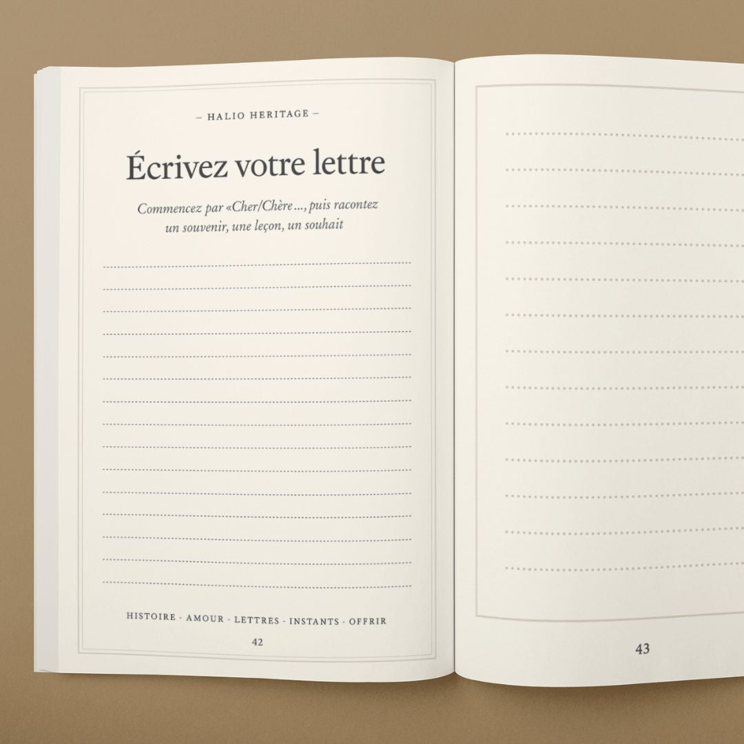 Non ! Halio Heritage est pensé pour les parents qui doutent de leur plume. Des prompts simples et inspirants vous guident à chaque étape, et vous laissent toujours la liberté d’écrire à votre façon.
